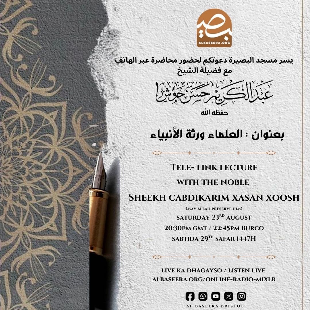- Subject Name: Culamadu Waa Kuwii Dhaxlay Anbiyada – Sheikh Cabdikarim Xasan Xoosh